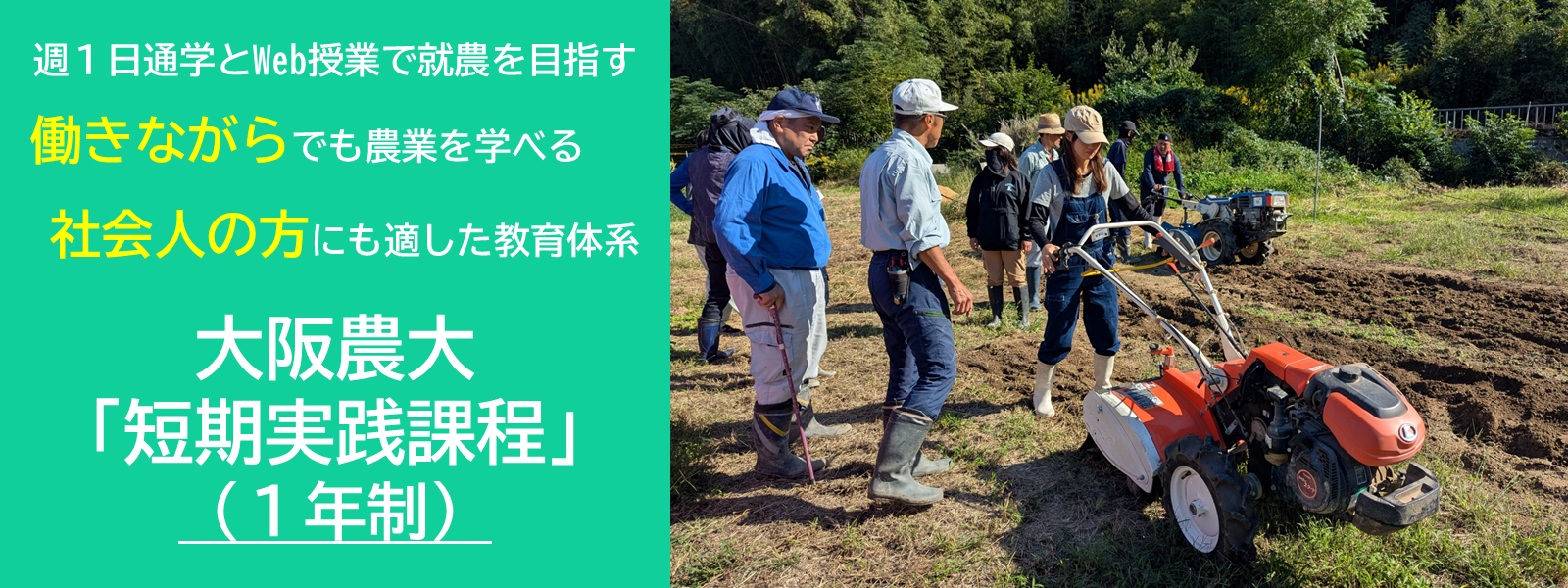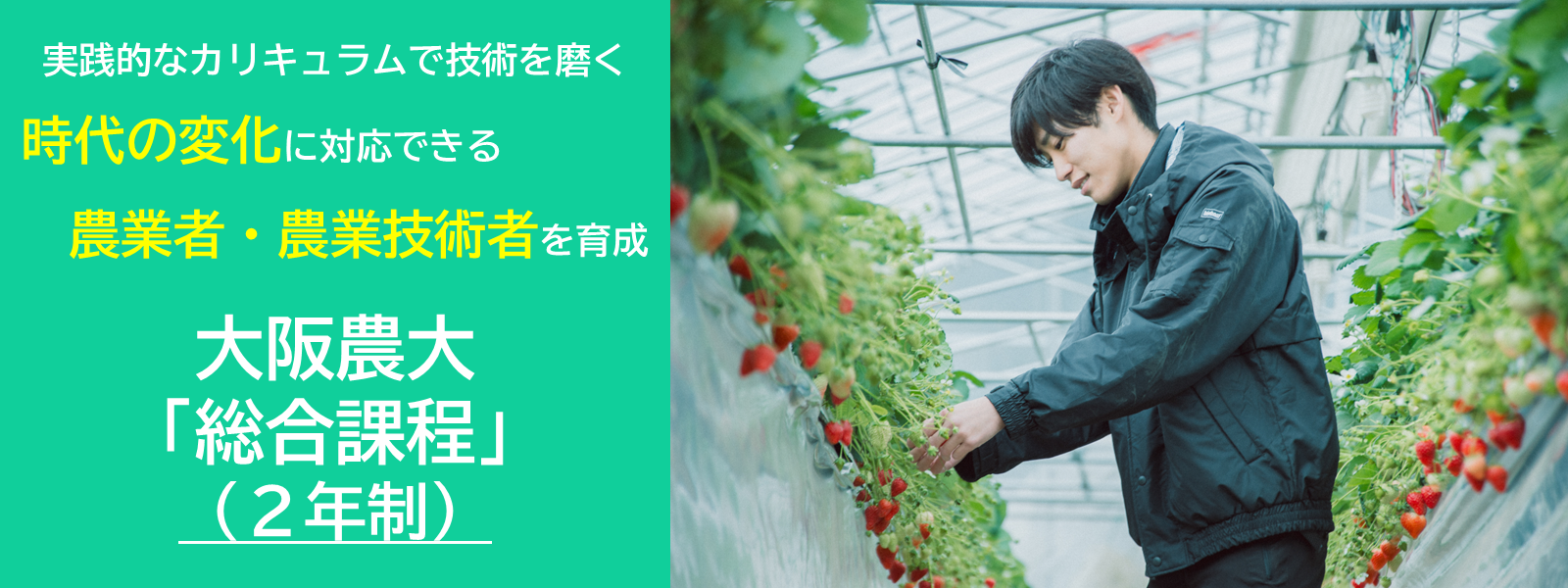 農業大学校(大阪農大)は、農業者や農業技術者の養成を行う教育・研修施設です。2年制の総合課程と、働きながら学べる 1年制の短期実践課程があります。両課程ともWeb講義を活用して効率的に学べる教育体制になっています。
