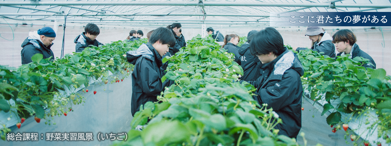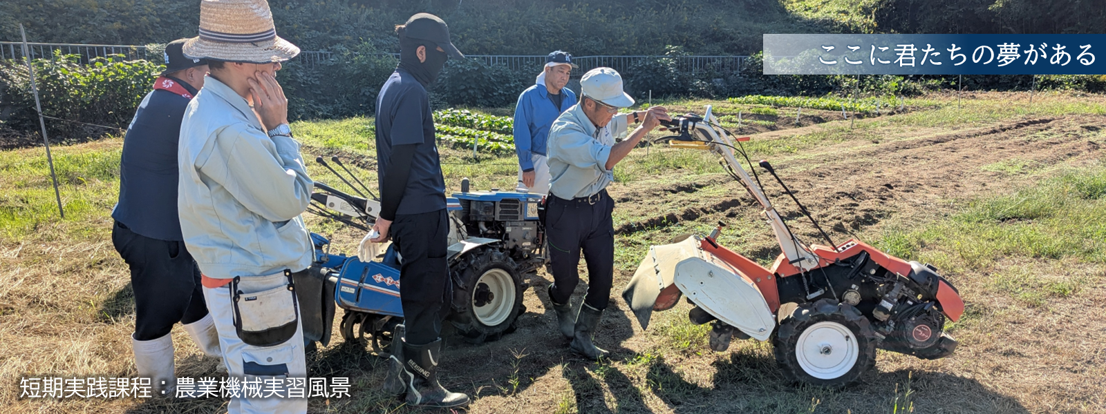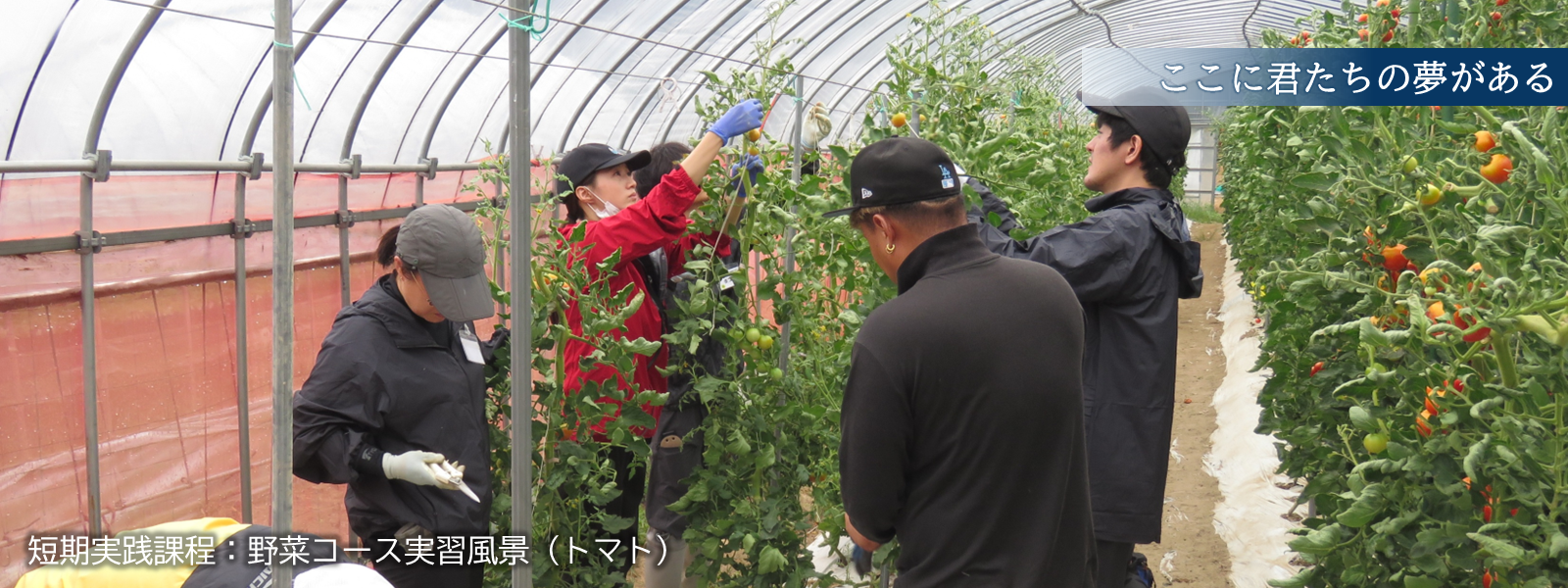 農業大学校では、農業者や農業技術者の育成を目的として、専門的な知識・技能の習得に向けた実践的な教育を行っています。